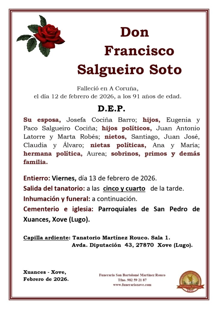 Los datos serán recogidos para gestionar la agenda de contacto para comunicaciones propias del negocio establecido, acciones promocionales por el responsable de los ficheros (ubicados en territorio de la unión europea) que es SAN BARTOLOMÉ-MARTÍNEZ-ROUCO SL (B27242189). Puedes consultar la información adicional y detallada sobre Protección de Datos en nuestra política de privacidad. Puedes consultar, rectificar o cancelar tus datos dirigiéndote al responsable del fichero mediante correo electrónico en la dirección info@funerariaxove.com.