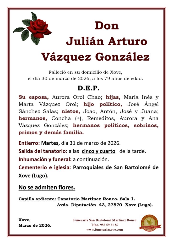 Los datos serán recogidos para gestionar la agenda de contacto para comunicaciones propias del negocio establecido, acciones promocionales por el responsable de los ficheros (ubicados en territorio de la unión europea) que es SAN BARTOLOMÉ-MARTÍNEZ-ROUCO SL (B27242189). Puedes consultar la información adicional y detallada sobre Protección de Datos en nuestra política de privacidad. Puedes consultar, rectificar o cancelar tus datos dirigiéndote al responsable del fichero mediante correo electrónico en la dirección info@funerariaxove.com.