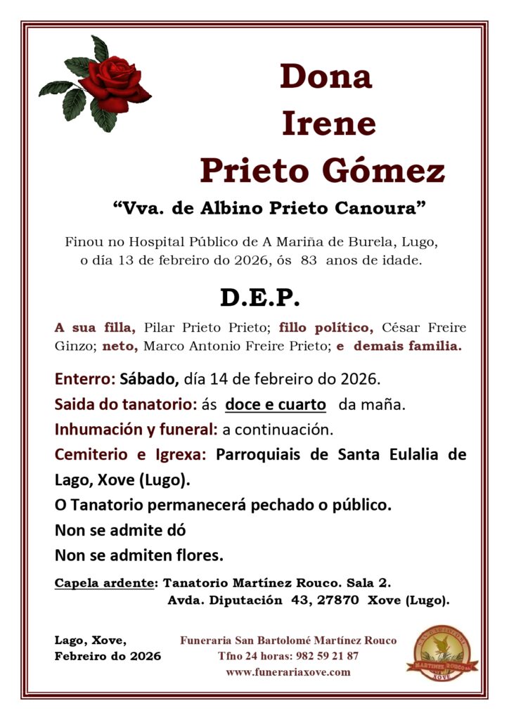 Los datos serán recogidos para gestionar la agenda de contacto para comunicaciones propias del negocio establecido, acciones promocionales por el responsable de los ficheros (ubicados en territorio de la unión europea) que es SAN BARTOLOMÉ-MARTÍNEZ-ROUCO SL (B27242189). Puedes consultar la información adicional y detallada sobre Protección de Datos en nuestra política de privacidad. Puedes consultar, rectificar o cancelar tus datos dirigiéndote al responsable del fichero mediante correo electrónico en la dirección info@funerariaxove.com.